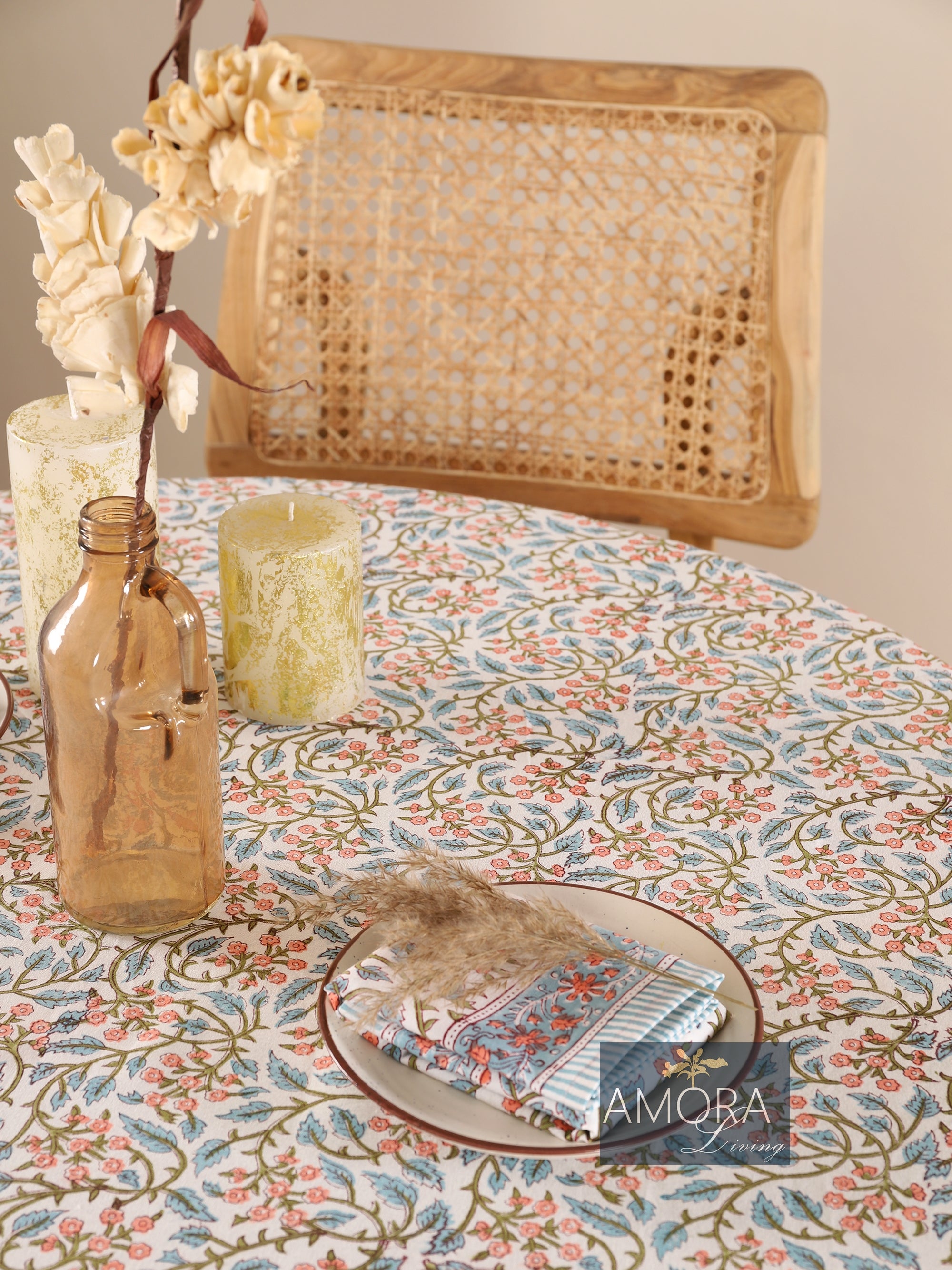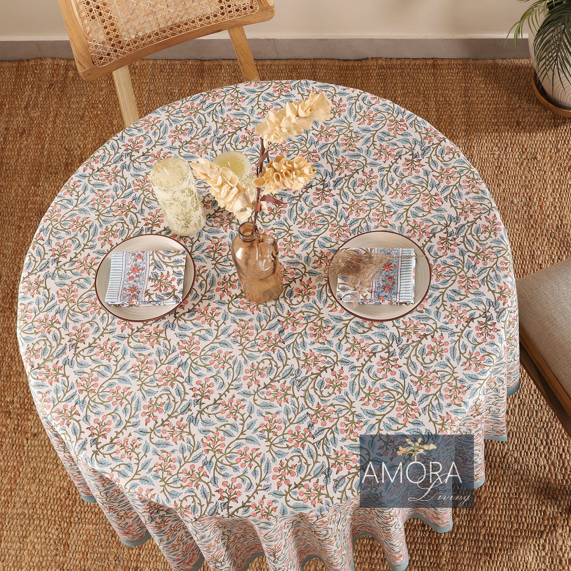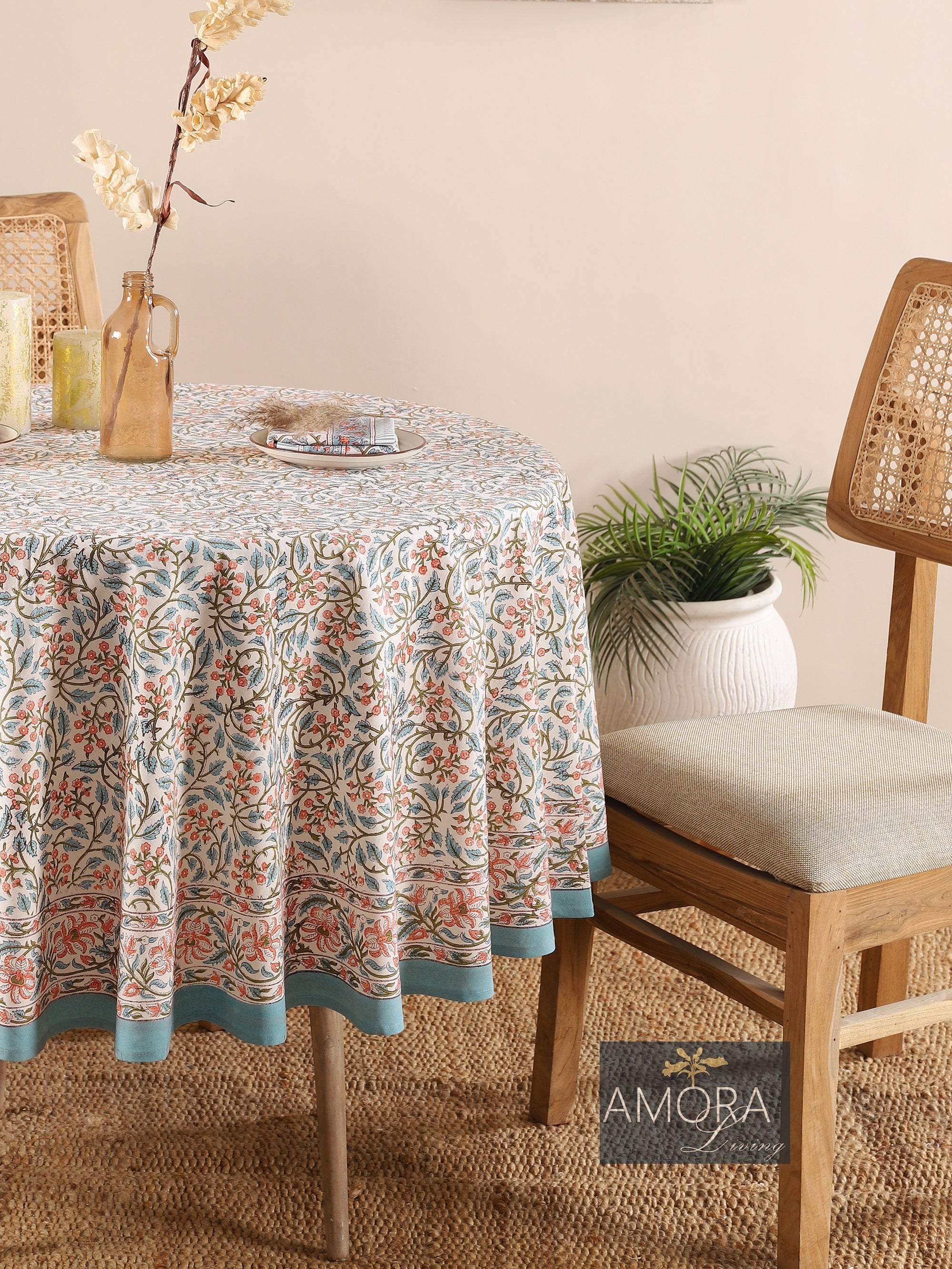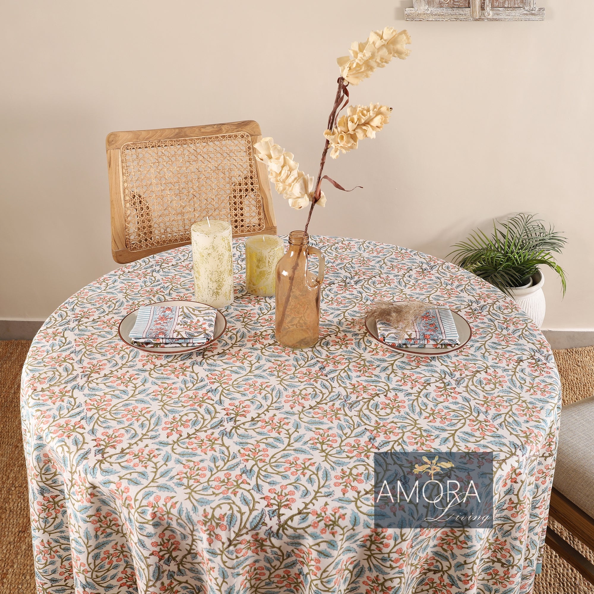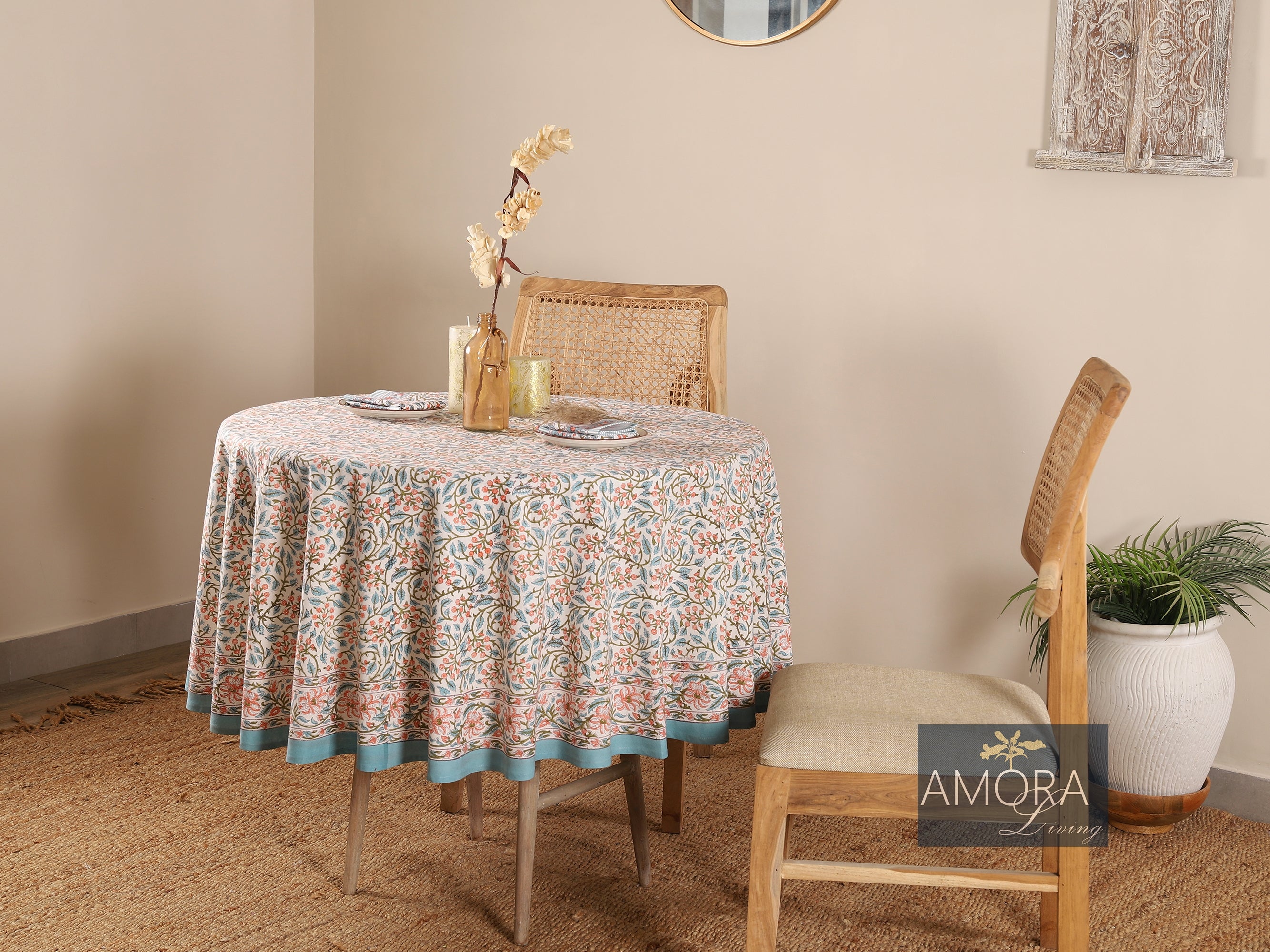 Floral Round Tablecloth, Indian Block Print Round Table Cover, Circle Tablecloth, Easter Gift, Farmhouse Kitchen Round Table Cloth