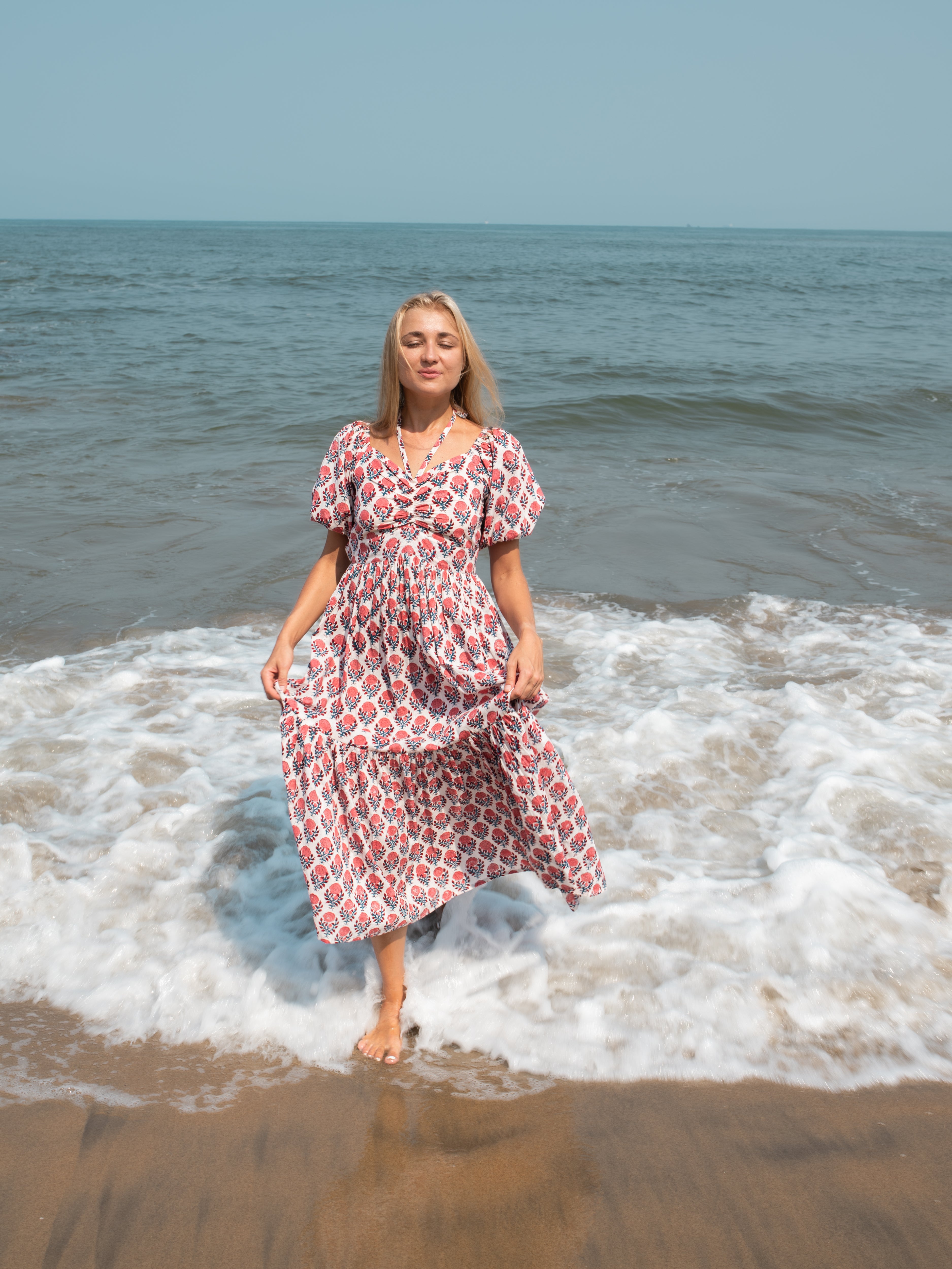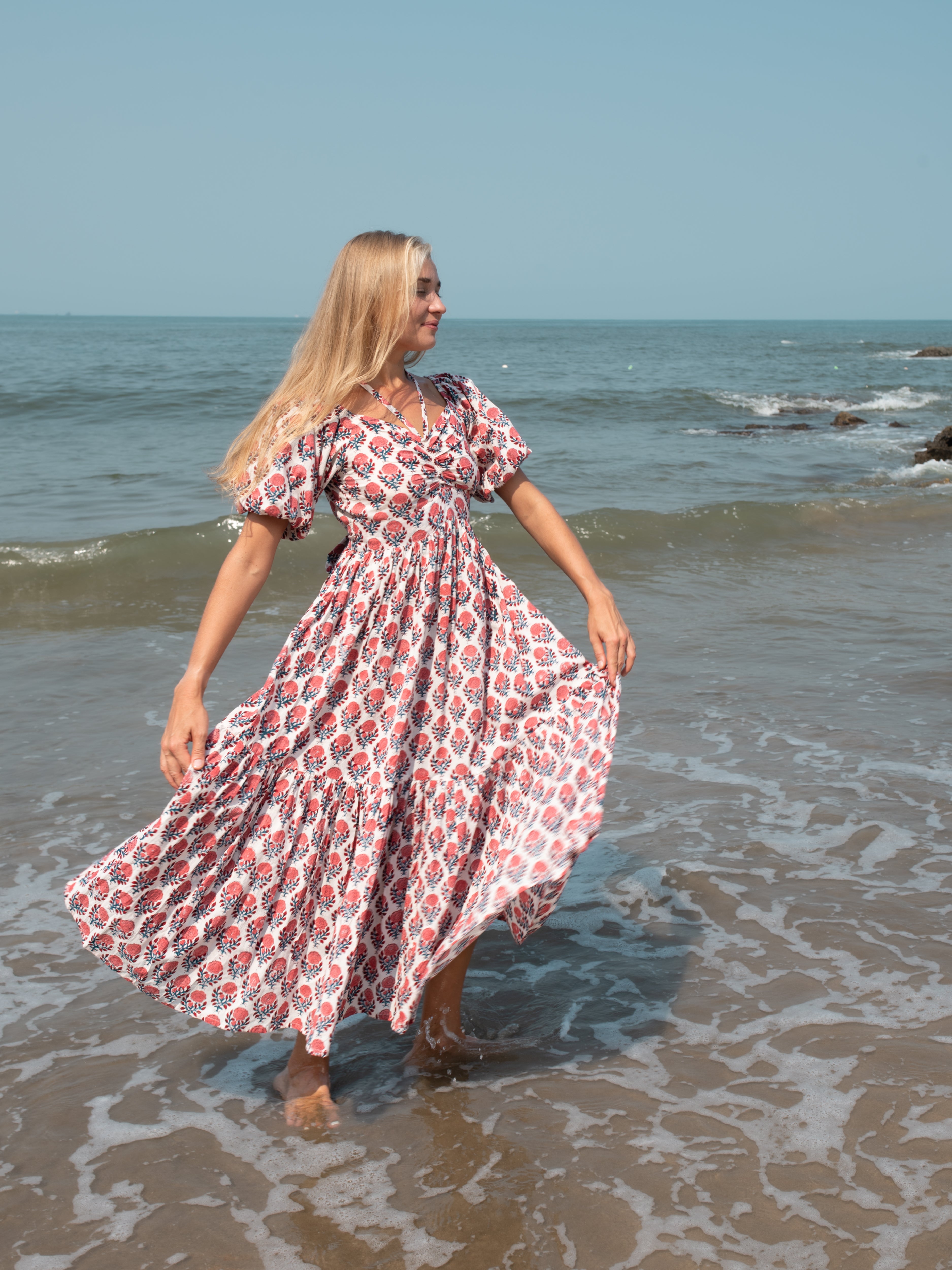 Catalina Hand Block Print Long Maxi Dress